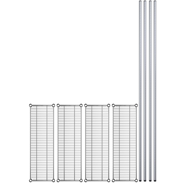This NSF chrome wire 4-shelf kit with 74” posts has a durable, commercial grade construction to accommodate your canned goods, kitchen appliances, packaged food items, boxes of bulk ingredients, and tools. By using this product for storage in your restaurant, warehouse, dining hall, supermarket, or other business, you'll keep your supplies neat and organized. Plus, since this kit includes everything you need, setup is quick and easy. This shelving unit requires assembly.