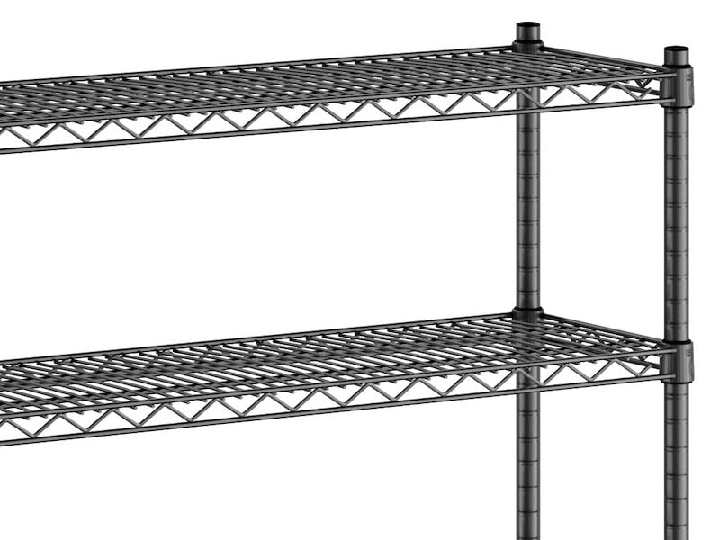 Each shelf features a wire construction, which allows for proper air flow around the stored supplies, products, or ingredients, and each shelf accommodates up to 600 lb. of evenly distributed weight.