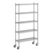 Keep your storage area organized with this Regency Spec Line NSF stainless steel mobile wire shelving starter kit with 5 shelves.