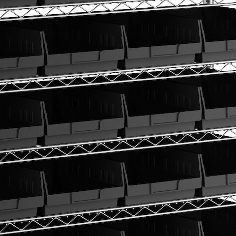 The included high-density, injection-molded shelf bins are designed to withstand the rigors of industrial environments, feature a highly durable polypropylene construction with reinforced edges, and are impervious to most chemicals.