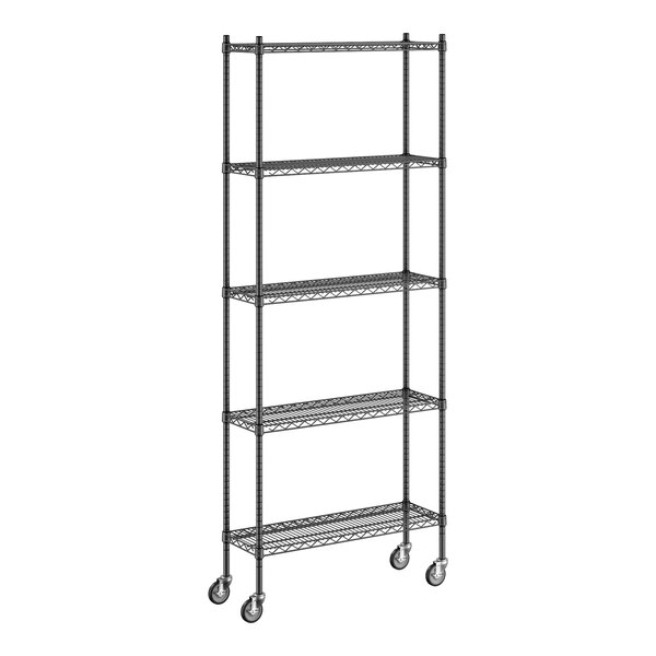 Regency 12" x 36" x 92" NSF Black Epoxy Mobile Wire Shelving Starter Kit with 5 Shelves