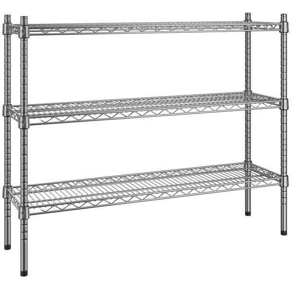 This 12” wide NSF chrome wire 3-shelf kit with 34” posts has a durable, commercial-grade construction to accommodate your canned goods, kitchen appliances, packaged food items, boxes of bulk ingredients, and tools. By using this product for storage in your restaurant, warehouse, dining hall, supermarket, or other business, you'll keep your supplies neat and organized. Plus, since this kit includes everything you need, setup is quick and easy. This shelving unit requires assembly.