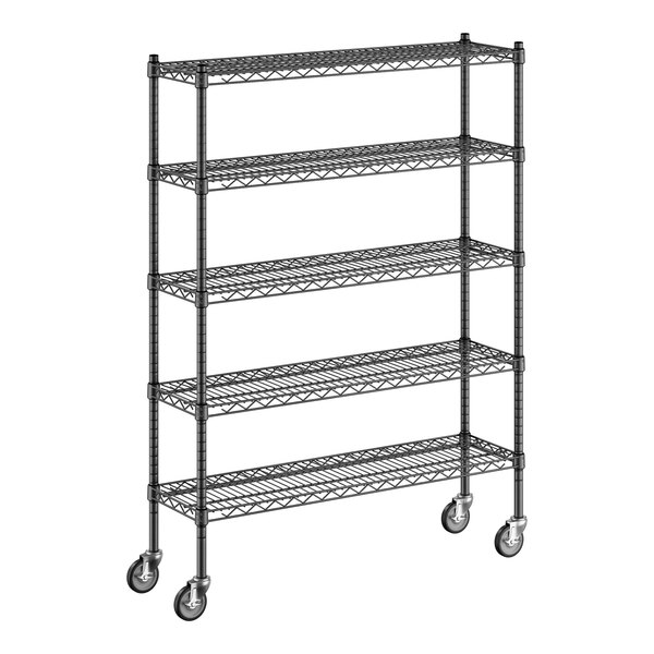Regency 12" x 42" x 60" NSF Black Epoxy Mobile Wire Shelving Starter Kit with 5 Shelves