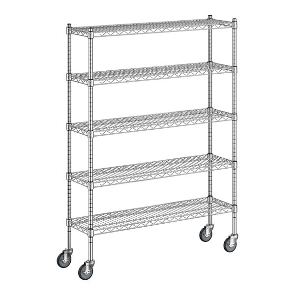 View All ItemsKeep your storage area organized with the Regency 12" x 24" x 60" NSF chrome mobile wire shelving starter kit with 5 shelves.
