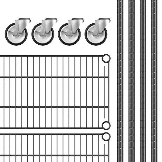 View All ItemsKeep your storage area organized with the Regency 12" wide NSF black epoxy mobile wire shelving starter kit with 4 shelves!