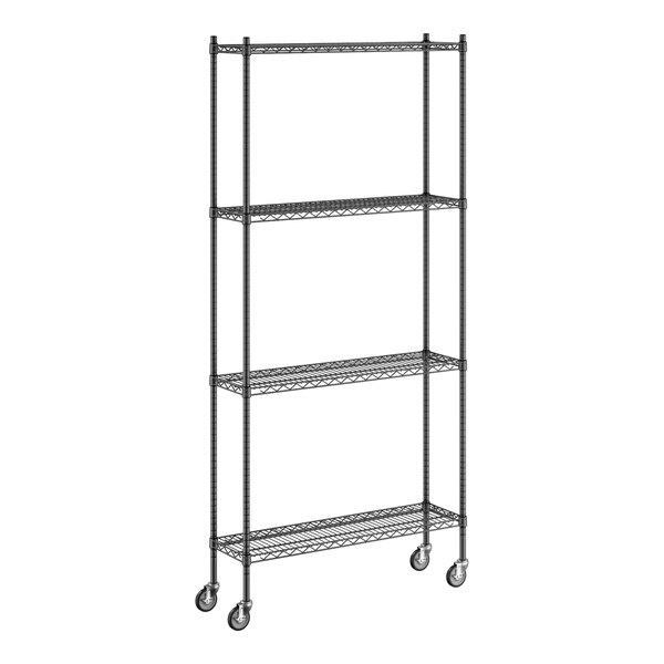 Regency 12" x 42" x 92" NSF Black Epoxy Mobile Wire Shelving Starter Kit with 4 Shelves