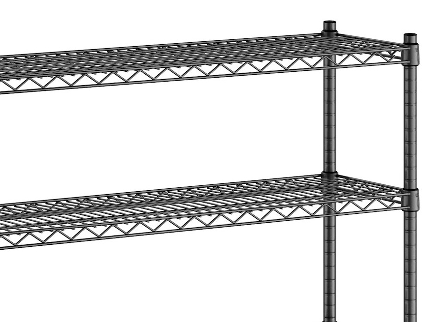 Each shelf features a wire construction, which allows for proper air flow around the stored supplies, products, or ingredients, and each shelf accommodates up to 600 lb. of evenly distributed weight.