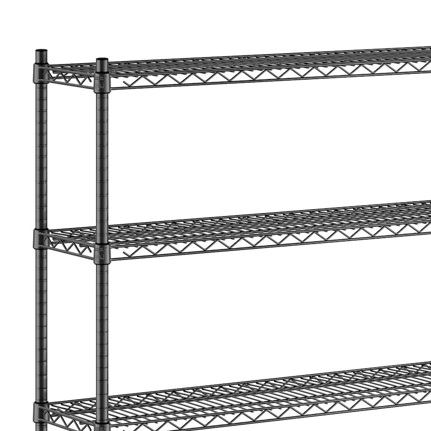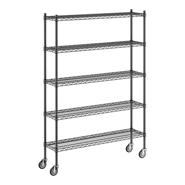 Keep your storage area organized with this Regency NSF black epoxy mobile wire shelving starter kit with 5 shelves.