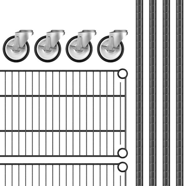 Regency 12" x 48" x 80" NSF Black Epoxy Mobile Wire Shelving Starter Kit with 5 Shelves