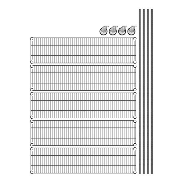 Organize your storage area with this Regency 12" wide NSF black epoxy mobile wire shelving starter kit with 5 shelves and 74" posts.