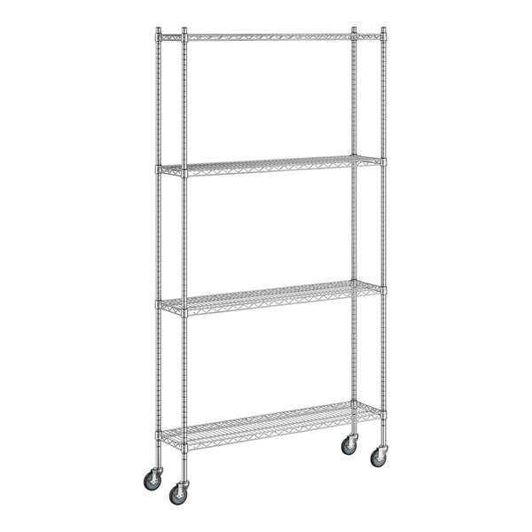 View All ItemsKeep your storage area organized with this Regency 12" wide NSF chrome mobile wire shelving starter kit with 4 shelves and 86" posts!