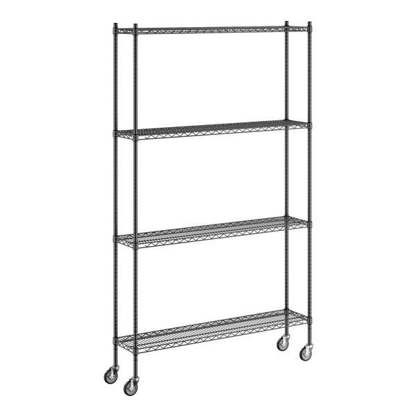Regency 12" x 54" x 92" NSF Black Epoxy Mobile Wire Shelving Starter Kit with 4 Shelves