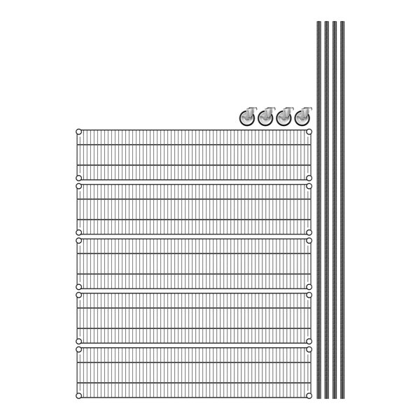 (4) 86" mobile posts, (4) 5" casters with brakes, (5) 12" shelves, and (20) pairs of split sleeves. This versatile unit allows you to create a convenient storage solution for your janitorial closet, warehouse, or walk-in cooler. This unit's high-quality design is commercial grade and delivers the reliable performance every business expects and needs.