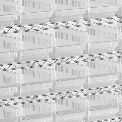 The included high-density, injection-molded shelf bins are designed to withstand the rigors of industrial environments, feature a highly durable polypropylene construction with reinforced edges, and are impervious to most chemicals.