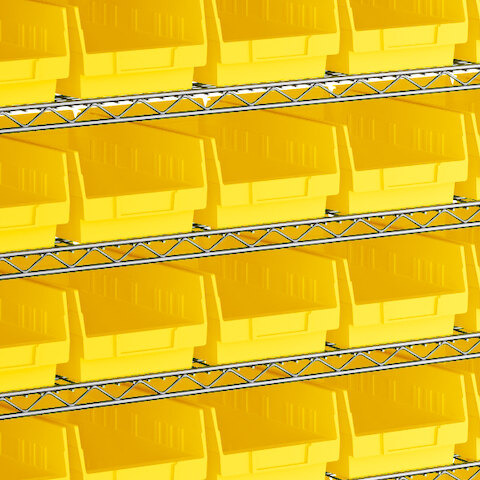 View All ItemsMaintain an organized industrial space with this Regency 12" x 60" x 74" wire shelving unit with 88 yellow bins.