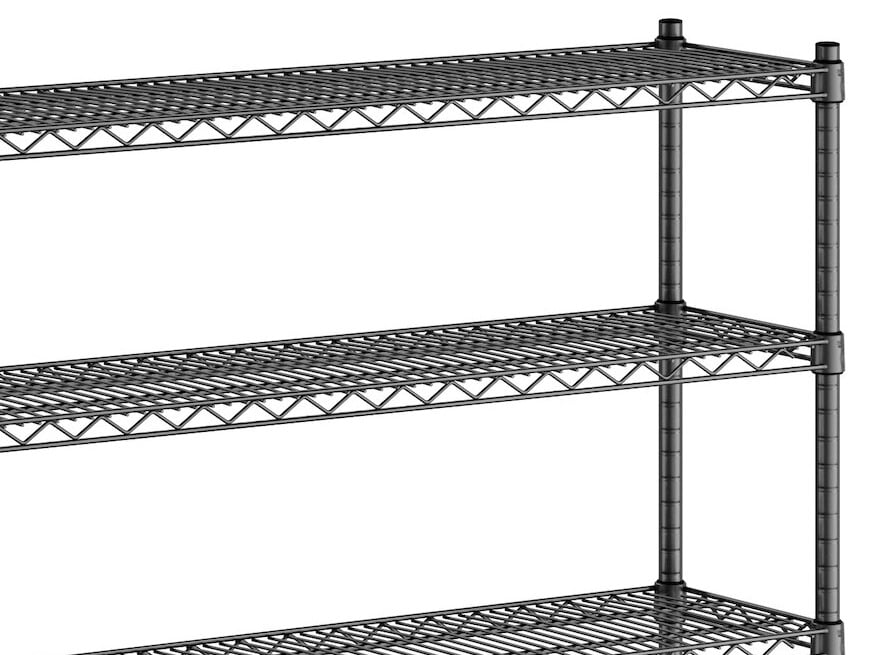 Each shelf features a wire construction, which allows for proper air flow around the stored supplies, products, or ingredients, and each shelf accommodates up to 600 lb. of evenly distributed weight.