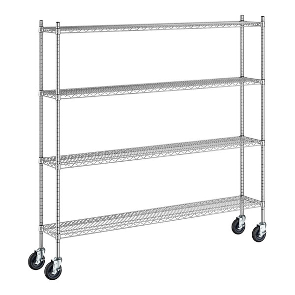 Regency Spec Line 12" x 72" x 70" NSF Stainless Steel Wire Mobile Shelving Starter Kit with 4 Shelves