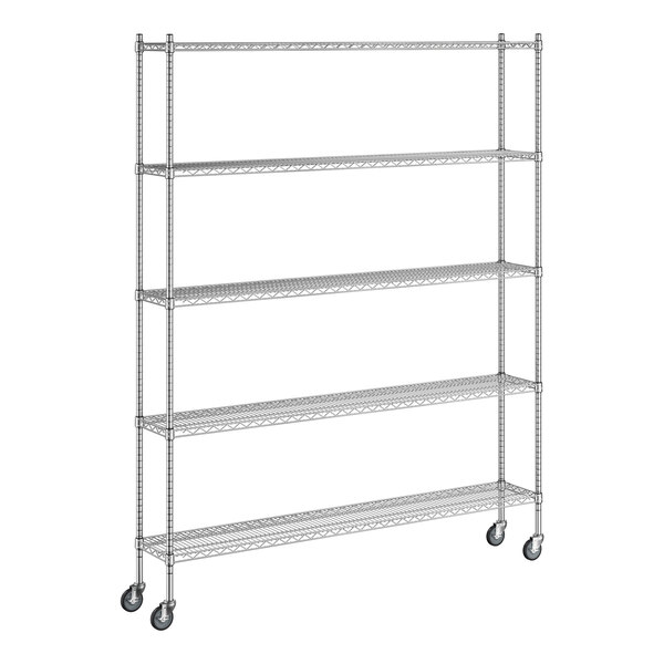 Made of sleek, durable chrome, this unit is ideal for use in your business's merchandising and display spaces or in back-of-house dry storage areas. Plus, the included 5" casters allow for quick access and easy cleaning, and the casters are equipped with brakes to secure the unit in place when needed.