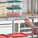 Fits nicely on metro shelving to help keep things organized as well as properly rotated. We use a first in first out system on our shelves left to right and this eliminates any confusion.