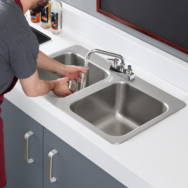 Designed for durability, corrosion-resistance, and sanitation, this sink's bowls are made of seamless deep drawn 20 gauge, type 304 stainless steel. This drop-in sink's innovative self rim design allows flush mounting into any countertop for a great fit in your kitchen.