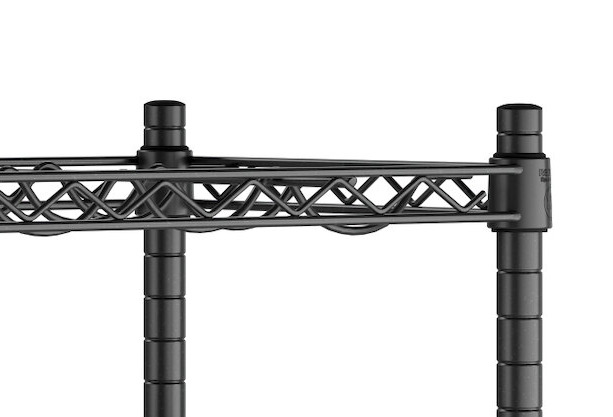 This all-inclusive kit comes with 20 pairs of split sleeves, 4 stationary posts, and 5 shelves, allowing you to quickly put it together straight out of the box. Complete with attached leveling feet, this product can easily adjust to accommodate uneven surfaces. This unit is not compatible with casters.