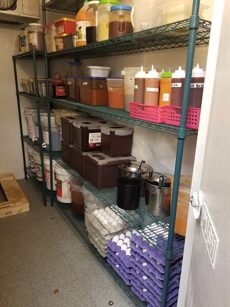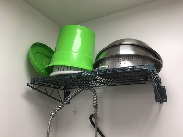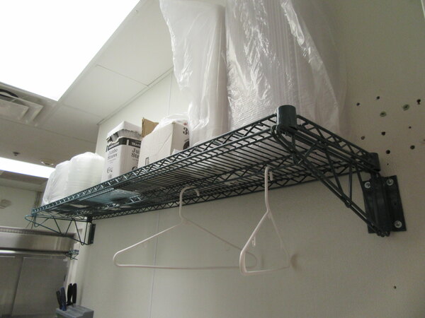 These shelves are perfect for almost any storage application. We use these in our walk-in cooler, in our dry storage area, and also above our sinks for drying dishes.