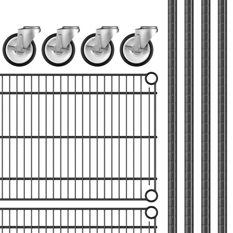 View All ItemsKeep your storage area organized with this Regency 14" NSF black epoxy mobile wire shelving starter kit with 5 shelves!