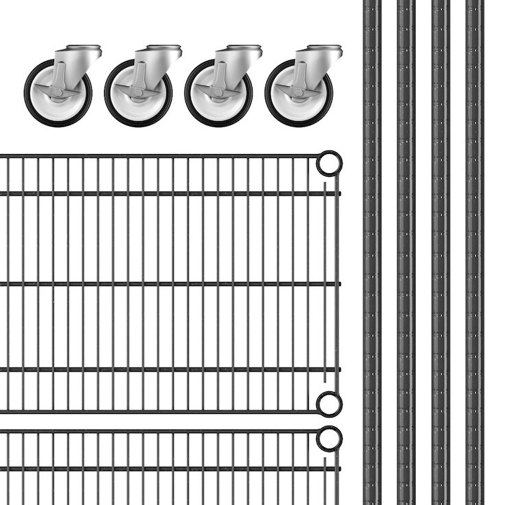 - Item #: 460b1424km64Regency 460B1424KM64 14" x 24" NSF Black Epoxy 4-Shelf Starter Kit with 64" Posts and Casters