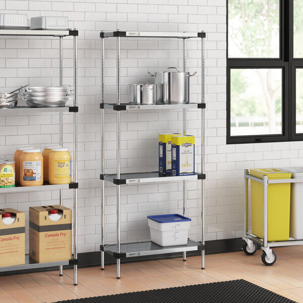 This reliable and versatile unit boasts a durable construction, allowing you to store your essential products with peace of mind. Plus, assembly is fast and easy, so you can start using the shelving unit quickly. Whether you're in a kitchen, retail, or industrial environment, this shelving unit is a reliable and efficient storage solution.