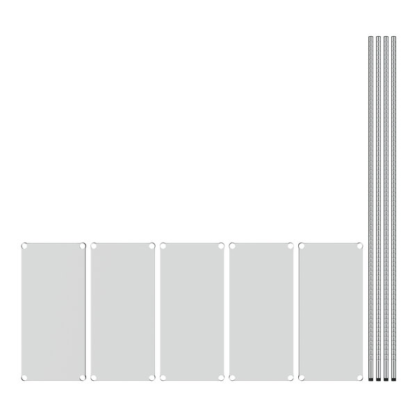 This kit includes (4) 74" stationary posts, (5) 14" x 30" shelves, and (20) pairs of split sleeves. This versatile unit allows you to create a convenient storage solution for your janitorial closet, warehouse, or walk-in cooler.
