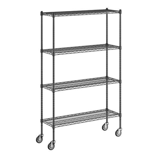 Regency 460B1442KM64 14" x 42" NSF Black Epoxy 4-Shelf Starter Kit with 64" Posts and Casters
