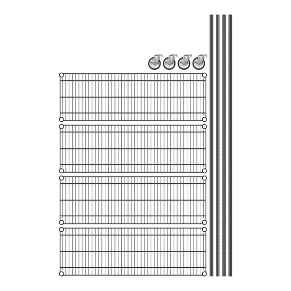 View All ItemsKeep your storage area organized with this Regency 14" NSF black epoxy mobile wire shelving starter kit with 4 shelves.
