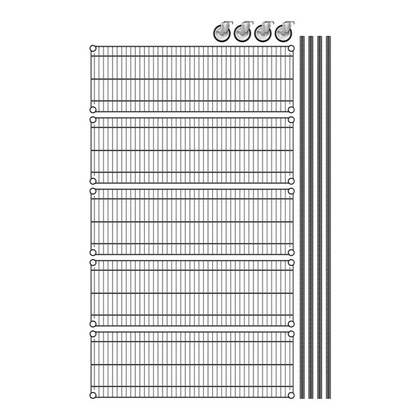 View All ItemsKeep your storage area organized with this Regency 14" NSF black epoxy mobile wire shelving starter kit with 5 shelves!