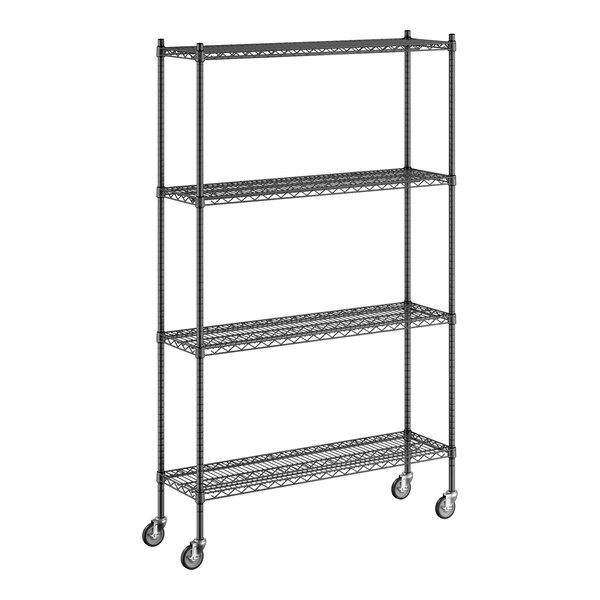 - Item #: 460b1448km74Regency 14" x 48" x 80" NSF Black Epoxy Mobile Wire Shelving Starter Kit with 4 Shelves