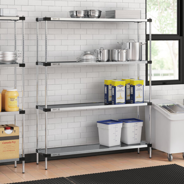 This reliable and versatile unit boasts a durable construction, allowing you to store your essential products with peace of mind. Plus, assembly is fast and easy, so you can start using the shelving unit quickly. Whether you're in a kitchen, retail, or industrial environment, this shelving unit is a reliable and efficient storage solution.