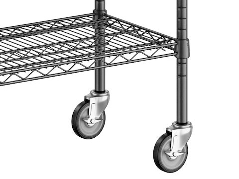 - (4) 64" posts to adjust shelves included; all 5" casters include brakes