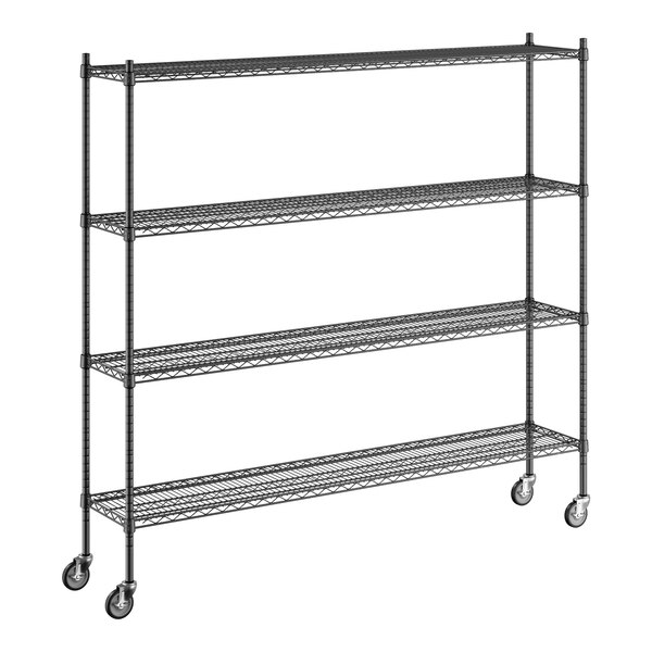 Regency 460B1472KM64 14" x 72" NSF Black Epoxy 4-Shelf Starter Kit with 64" Posts and Casters