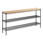This kit includes (3) 14" wide wire shelves, (4) 34" posts, and (1) 1" thick solid wooden removable shelf insert on the top shelf, which allow you to create a convenient storage solution for your restaurant, hotel, bar, warehouse, or garage.