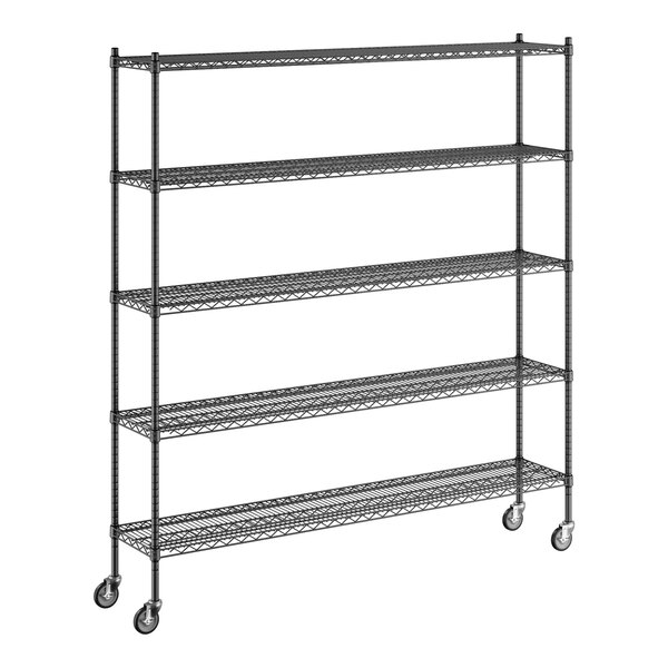Regency 14" x 72" x 80" NSF Black Epoxy Mobile Wire Shelving Starter Kit with 5 Shelves