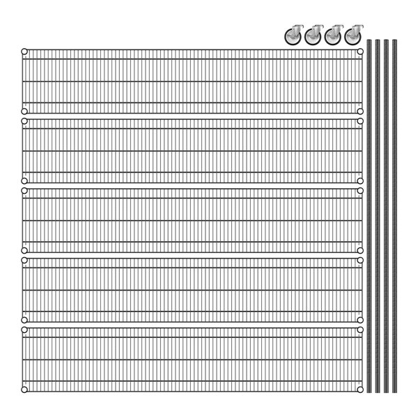 View All ItemsKeep your storage area organized with this Regency 14" NSF black epoxy mobile wire shelving starter kit with 5 shelves!