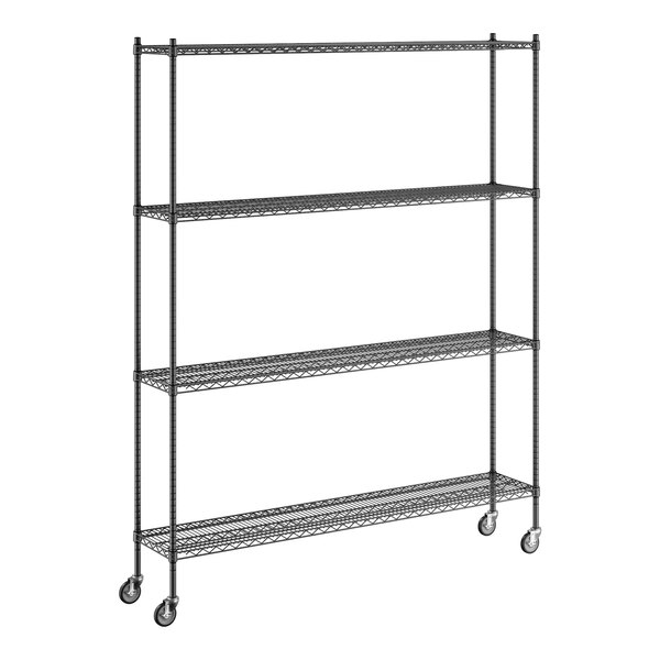 - Item #: 460b1472km84Regency 14" x 72" x 92" NSF Black Epoxy Mobile Wire Shelving Starter Kit with 4 Shelves