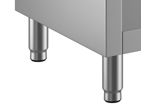 Each leg has an adjustable bullet style foot that can be raised or lowered to level the cabinet if the floor is uneven.