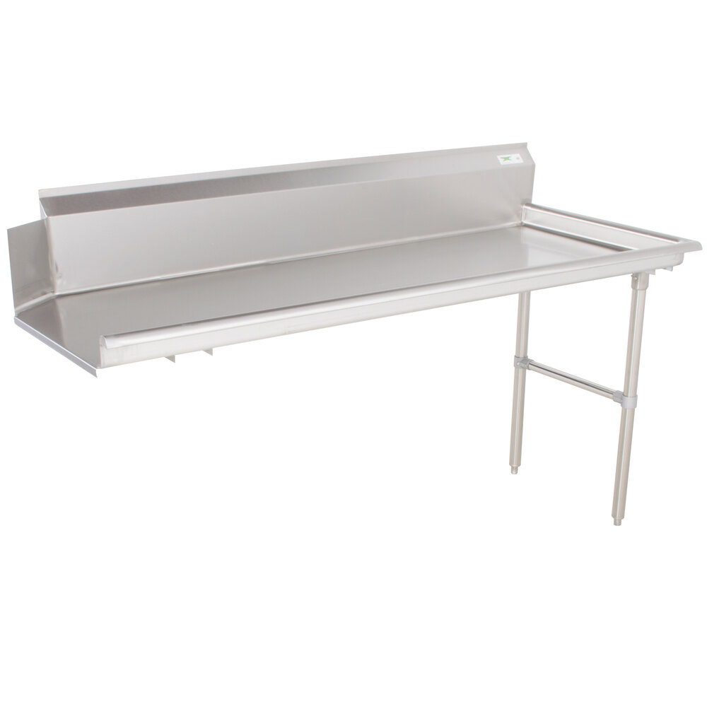 nice quality stainless dish table we have on the left side of our dishwasher for clean dishes. It has a lip on the side to fit right into your commercial dishwasher-very simple, and very convenient.