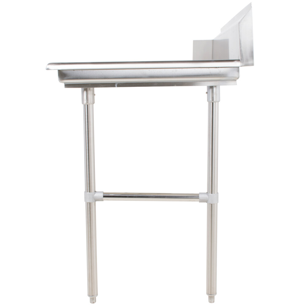 This entire clean dish table is made from 16 gauge 304-series stainless steel, including the gusset, gusset channel, legs, cross bracing, and feet. Thanks to this stable structure you can be sure this product will last a long time.