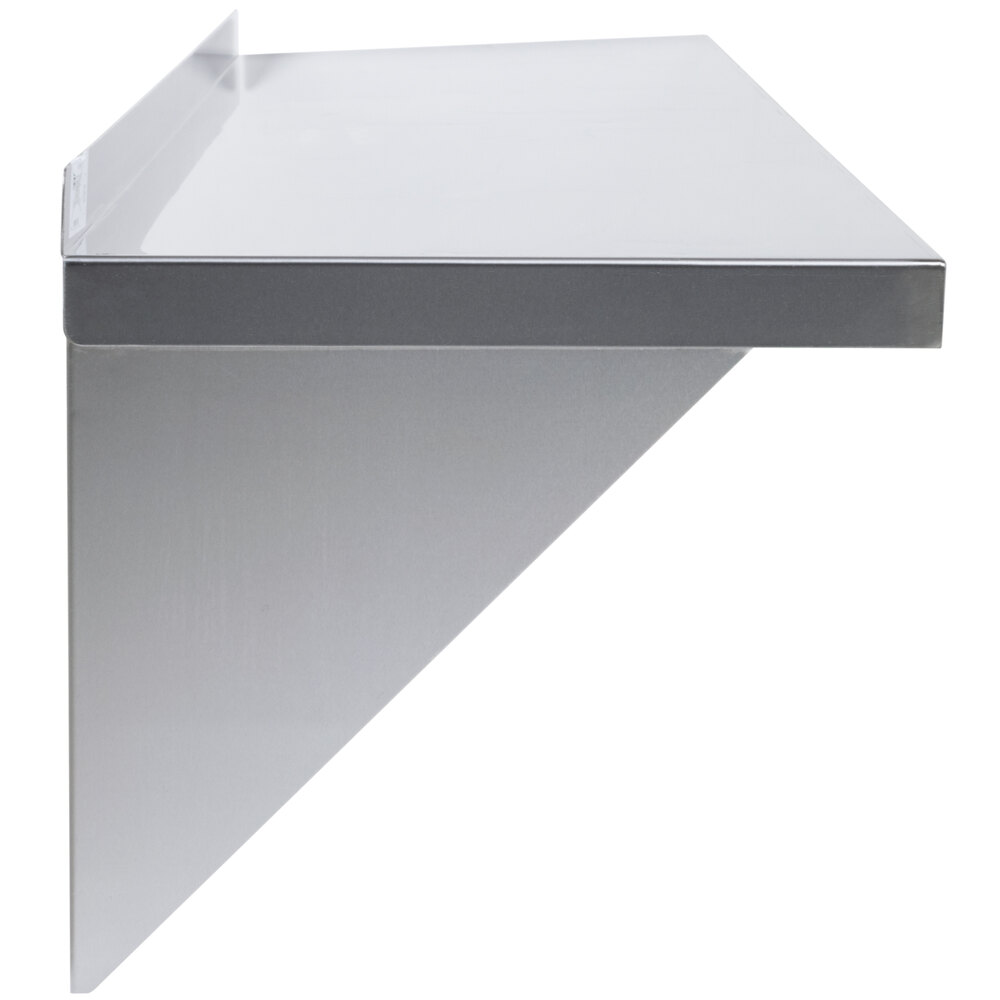 To add extra storage above your work table or countertop, look no further than the Regency 16 gauge stainless steel solid wall shelf. Simply attach the shelf to your wall, and you can keep your most used ingredients, supplies, and hand tools within reach without using up all of your valuable counter space. Also, thanks to its stainless steel construction, this shelf is easy to clean and maintain.