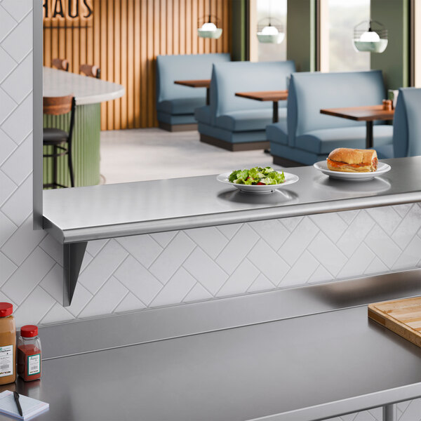 This shelf's durable and reliable design makes it the perfect addition to your kitchen that's sure to enhance your workflow and assist your employees. The classic stainless steel finish on this shelf and its sleek design make it an excellent option for your restaurant, ensuring that it will blend in with any decor.