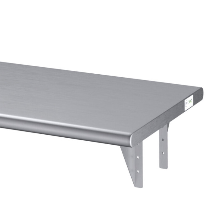 Because it is made of 16-gauge type 304 stainless steel, this shelf can be confidently installed in your kitchen without fear of rust or corrosion. It features 1 1/2" sanitary rolled front and back edges with square ends.