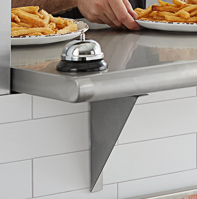 This shelf's durable and reliable design makes it the perfect addition to your kitchen that's sure to enhance your workflow and assist your employees. The classic stainless steel finish on this shelf and its sleek design make it an excellent option for your restaurant, ensuring that it will blend in with any decor.