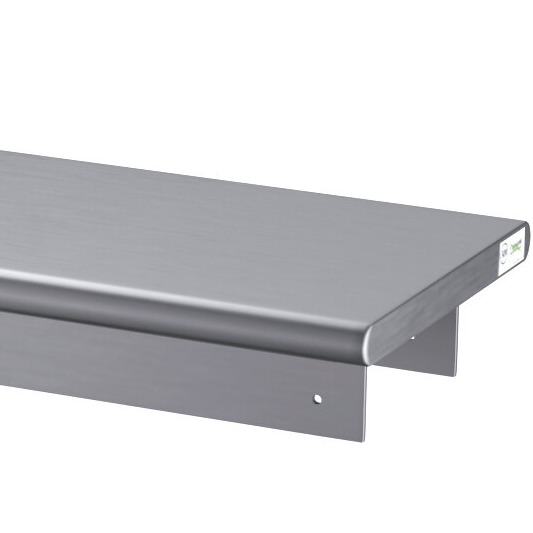 Because it is made of 16-gauge type 304 stainless steel, this shelf can be confidently installed in your kitchen without fear of rust or corrosion. It features 1 1/2" sanitary rolled front and back edges with square ends.
