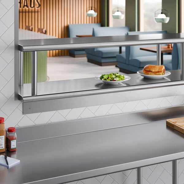 Since this shelf comes with both a pass-through shelf and an overshelf, it offers twice the amount of surface area. Its durable and reliable design makes it the perfect addition to your kitchen that's sure to enhance your workflow and assist your employees. The classic stainless steel finish and sleek design make it an excellent option for your restaurant, ensuring that it will blend in with any decor.